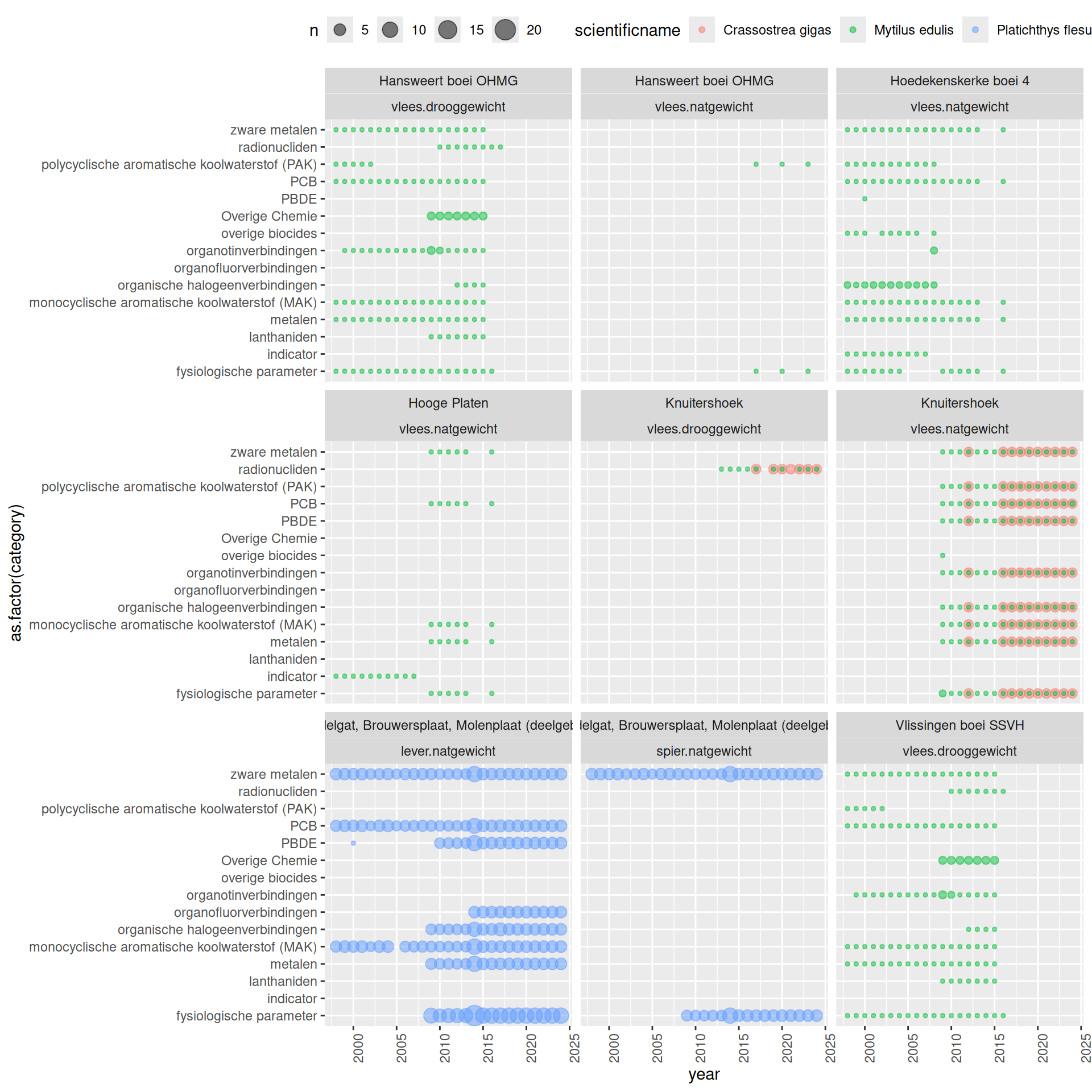 Informatie over de ophoping van stoffen in biota is niet meegenomen in deze rapportage
